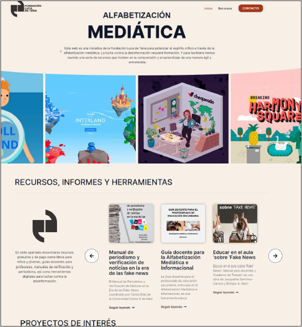 La Fundación Luca de Tena ha creado la web EducacionMediatica.org, un site que quiere servir como un agregador que va reuniendo en un solo lugar recursos, juegos, informes, etc. para profesores y niños.